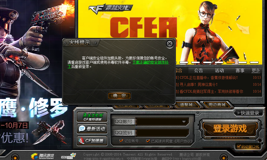 因近期我们发现CF开始出现木马盗号的情况,为了保护广大玩家的帐号安全,维护玩家的虚拟财产,我们决定在本周版本上线由腾讯游戏安全中心提供的帐号安全保护方案,用于保护玩家在登录游戏时的帐号安全。