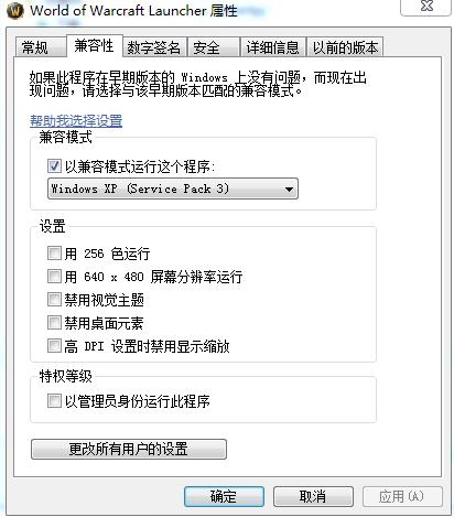 进入wow文件夹 设置World of Warcraft launcher 以兼容模式运行