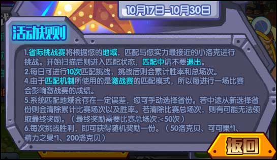 洛克王国第一届省际挑战赛在10月17日开始啦!小洛克们快点去参加吧,有丰富的奖励等着大家哦!洛克王国省际挑战赛怎么玩呢?下面小编就给大家详细介绍洛克王国省际挑战赛玩法吧。