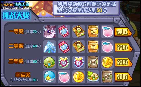 3、匹配中不允许退出,具体详情参考活动规则,点击比赛奖励领取,就可以根据小洛克的胜率还领取相应奖励了哦!