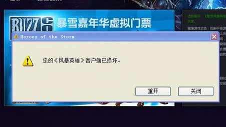 看到有小伙伴在问风暴英雄客户端损坏是不是要重下以及风暴英雄客户端损坏怎么解决等问题,看来关于遇到提示风暴英雄客户端已损坏的玩家小伙伴似乎还不在少数呢!那么遇到风暴英雄提示“您的风暴英雄客户端已损坏”(如下图)的情况时应该怎么办呢?又该如何解决呢?下面小编就为大家带来这相关问题的解决办法——