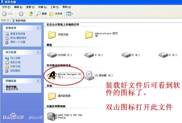 装载好文件后可以看到虚拟光驱的图标变了,这就是安装软件的图标,双击它就可打开光盘镜像文件了。