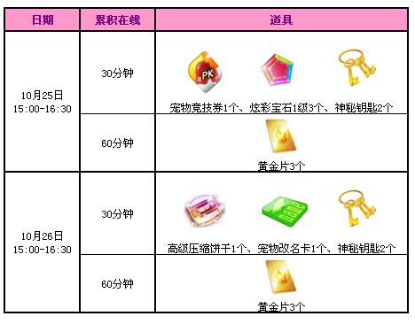 活动期间累积在线,即可获得宠物用品、1级宝石、黄金卡片等诸多好礼。