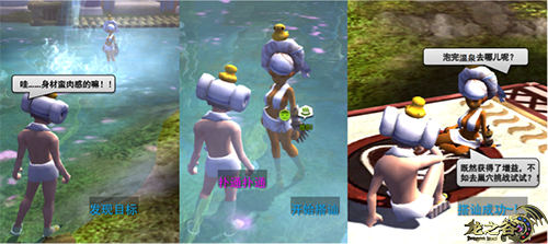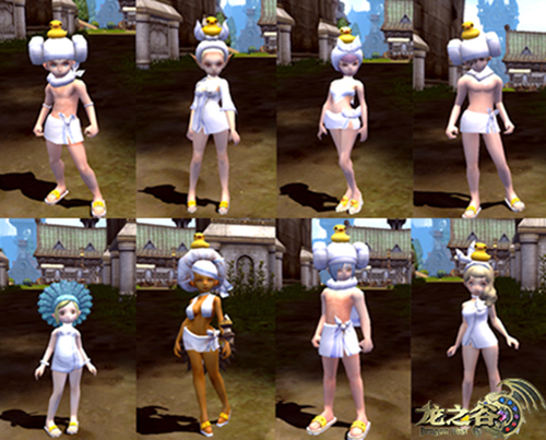 以为进入温泉区域后大家的装扮就千篇一律了?!汇聚了众多时尚宠儿的龙之谷,自然不会放过温泉时装这个全新的设计领域,各种千奇百怪的元素在设计师笔下相互碰撞,简简单单的浴帽也能摇身变成活灵活现的牛角、鹿耳和伞花造型。游戏中角色们诱人的身姿曲线更是让人血脉膨胀,新一股的温泉潮流就要席卷而来了!