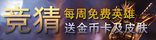 1:猜中每周免费英雄10个中的任意1个,送双倍金币卡(1日)一张,限量5张,随机抽取,送完即止