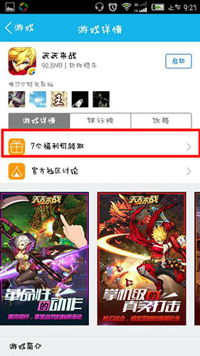 3、找到天天来战图标(需要下载好游戏才有),点击图标进入福利中心。