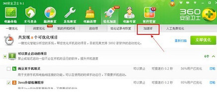 在360安全卫士9.1版本中进入界面,点击进入优化加速版块。