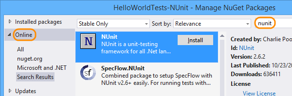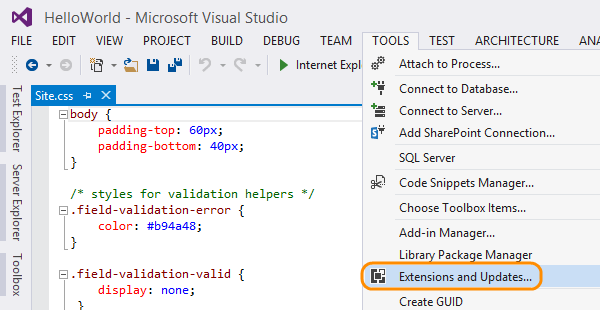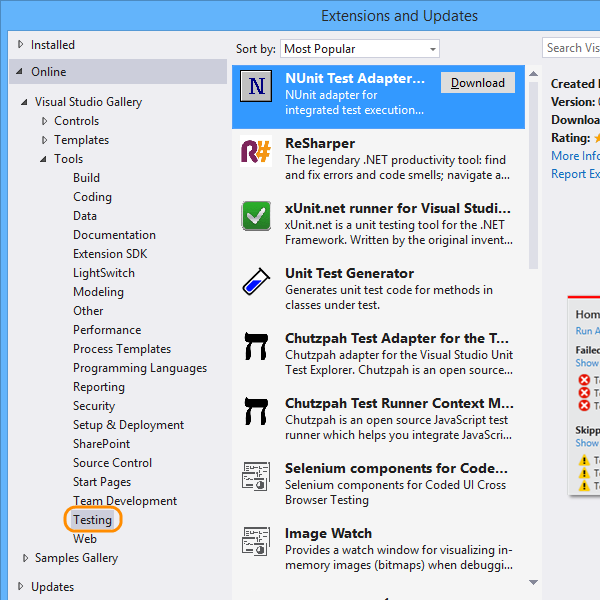 从位于“工具/测试”下的 Visual Studio 库下载您的插件,或者,如果您知道插件名称,可搜索该插件。