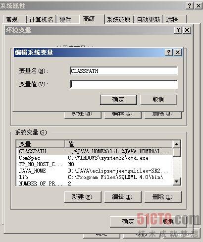 (2)CLASSPATH 为 .;%JAVA_HOME%\lib;%JAVA_HOME%\lib\Tools.jar