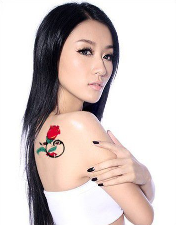 3、选择“玫瑰”纹身图案,调整位置大小: