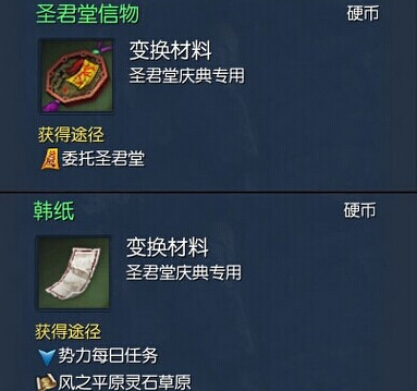 韩纸的主要作用是用来合成圣君堂礼物盒,合成一次需要10个韩纸+1个圣君堂信物+1个灵石+1银。