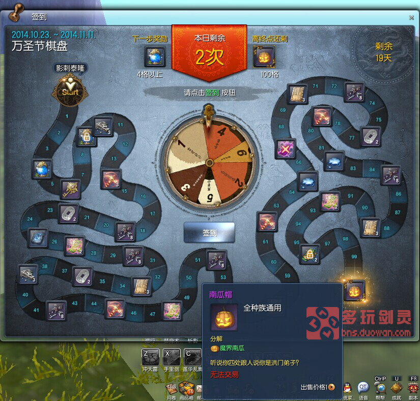 剑灵2014万圣节棋盘活动 得南瓜帽奖励