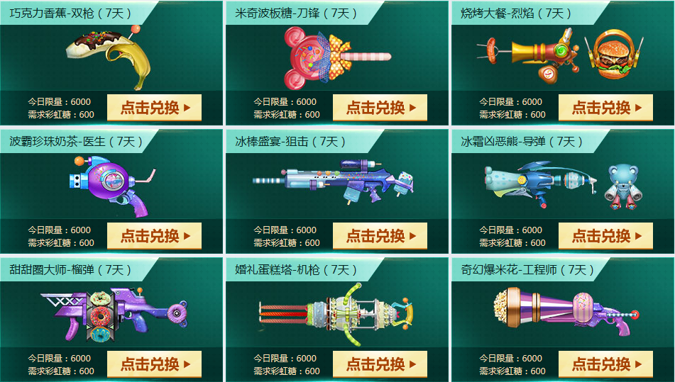 2活动期间,玩家可以使用一定数量的彩虹糖来兑换奖励,每种奖励每个QQ号最多只能兑换5次;非卖品每日限量兑换,每个限量道具每人每天只能兑换1次;