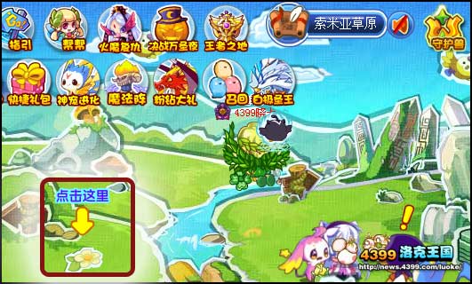 2、前往索米亚草原,点击场景中提示的的位置,就可以诱惑飞天刀螂现身。