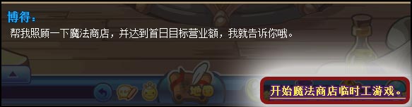 2、在活动面板中选择任务相关对话!开启体验魔法商店临时工游戏,帮助其达成营业额!