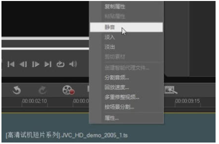 在导入的视频上右键,选择“静音”(可以达到分割并删除音频的效果),其它的步骤跟上面一样。(图八)