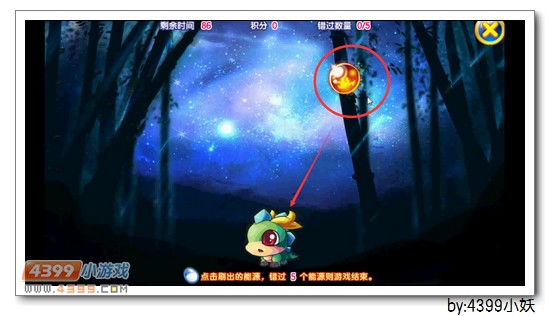 从龙角兽左右方向刷出的能源球,如果没有及时点击,每错过一次都会扣除我们现有的积分哦!错过5次能源球游戏提前结束。
