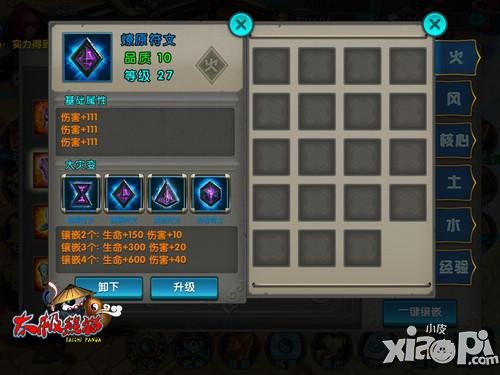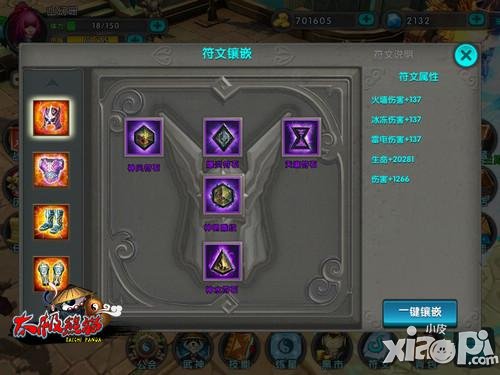 极熊猫符文系统根据角色携带的装备以及镶嵌的符文来增加角色的属性值。携带的装备和符文的品质越好,附加的属性就越强。符文有风、水、火、土三大属性,还有最重要的核心符文。