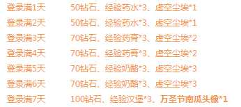 1. 活动期间内只要登录满7天的玩家即可在第7天获得万圣节南瓜头像;