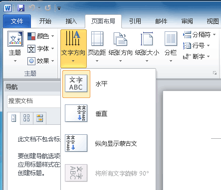 完成上面的步骤后,我们就可以打开WORD,从“页面布局”里面选择“文字方向”,这时我们就可以看到“纵向显示蒙古文”的选项,我们要选择这个功能。