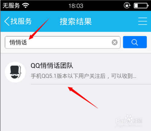第三步:接下来在搜索栏哪里输入悄悄话,点击查找。接着点击qq悄悄话团队。