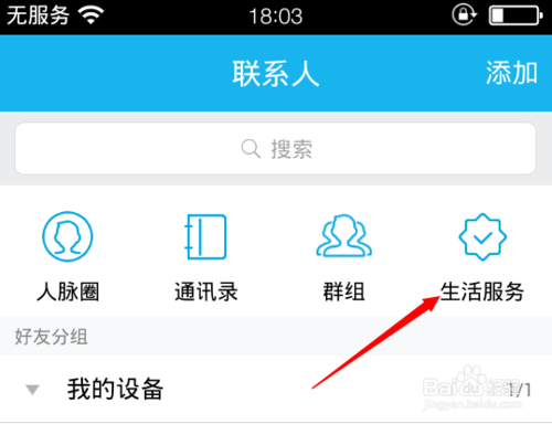 第一步:登陆最新版本的手机qq,在联系人列表中点击进入生活服务功能。