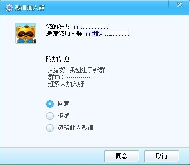 系统向被邀请成员发出群邀请消息。对方收到邀请消息并同意加入后,即被加入到Y群。如下图: