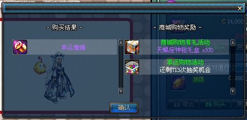 购买幸运魔锤,可以获得同等数量的天蝎座神秘礼盒