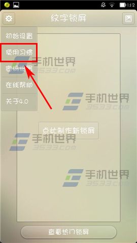 1)下载并打开【纹字锁屏】,进入界面后点击左上角按键。(如下图)