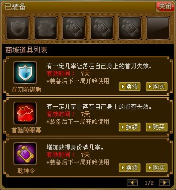 弹出商城菜单后选择要换领的道具,注意,目前提供的共有5款道具。