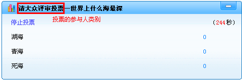 【停止】:点击【停止】,参与人不能投票,但依然展示投票结果的窗口。