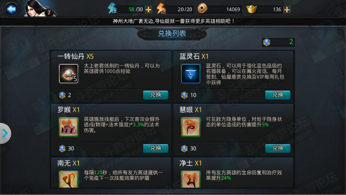 5、集齐仙魔石可兑换稀有道具哦~点击右下角“兑换”,进入兑换列表。