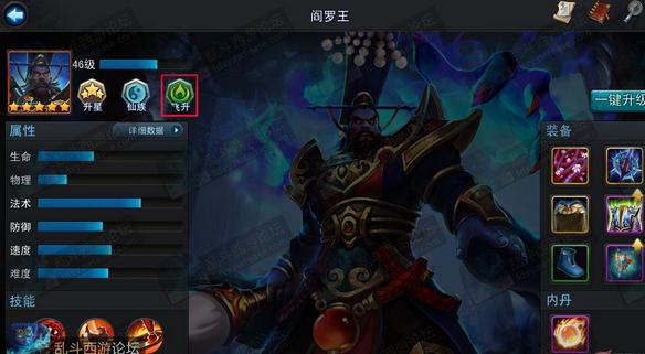 如下图所示,阎罗王飞升1级的属性增加的属性如下: