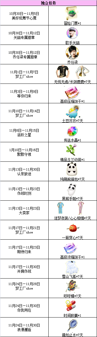 首页 → 游戏攻略 → qq炫舞11月活动任务有哪些 qq炫舞11月系列/独立任务奖励一览