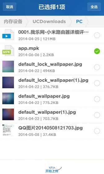 第三步:此时可以看到已经下载好的.mpk格式插件,勾选,点击“开始上传”。