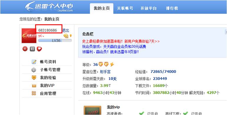2、还可以登录迅雷个人中心 http://i.xunlei.com/ 进行查看,如下图。