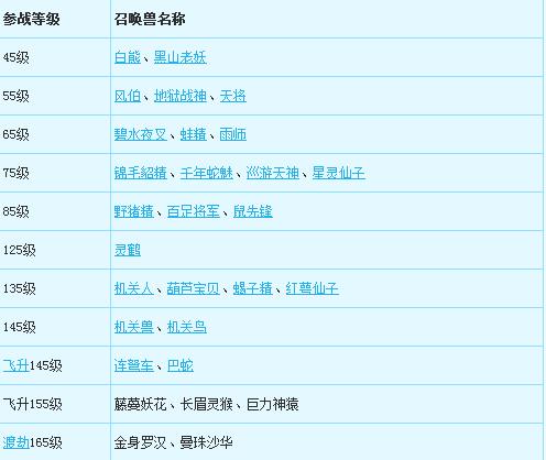 1、“召唤兽进阶”系统新增29只可进阶召唤兽,在部分服务器测试: