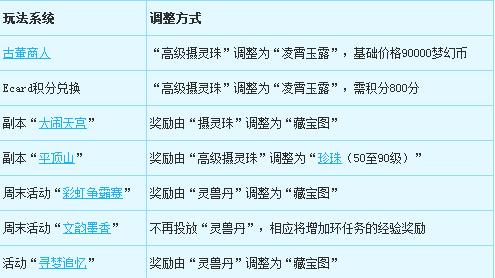 1、部分玩法中将不再投放道具“摄灵珠”、“灵兽丹”,详细设置如下: