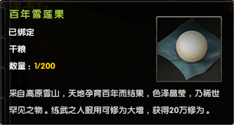 活动期间,凡玩家每天充值满100元玩家即可免费获赠“百年雪莲果”1颗和“充值奇珍包”1个,充值满200元玩家即可免费获赠“百年雪莲果”2颗和“充值奇珍包”2个。如果当天充值满500元的玩家,除了原有5份(5个百年雪莲果、5个充值奇珍包)奖励外,还能额外再获得“百年雪莲果”1颗和1个充值奇珍包,即当天充值满500元的玩家,每天最多可获得“百年雪莲果”6颗和充值奇珍包6个。