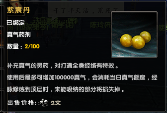 2、充值奇珍包打开之后可以获得紫宸丹2个,随机奇珍5个,金元再生丹1个。
