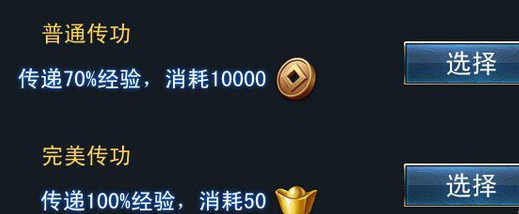 普通传功:传递70%经验,消耗10000金币