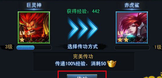 完美传功:传递100%经验,消耗 50 元宝