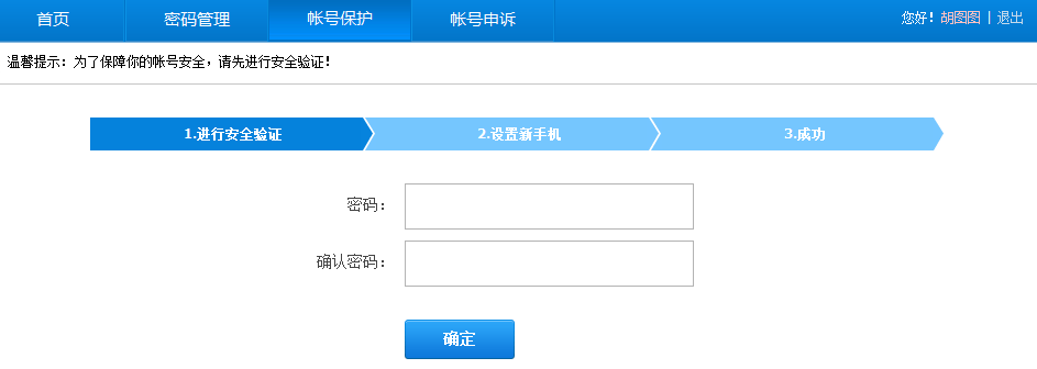 2、输入您账号的登录密码,点击确定,跳转到绑定手机界面: