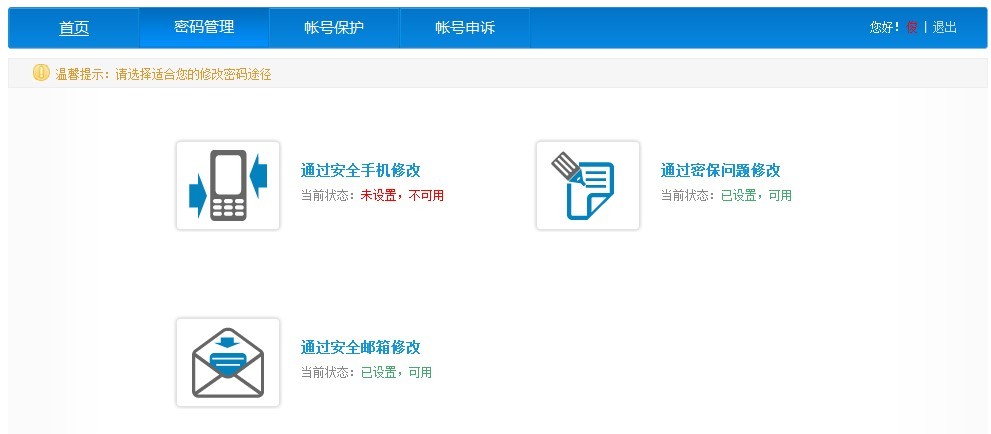 2、点击修改密码后,可以通过以下三种方式修改密码: