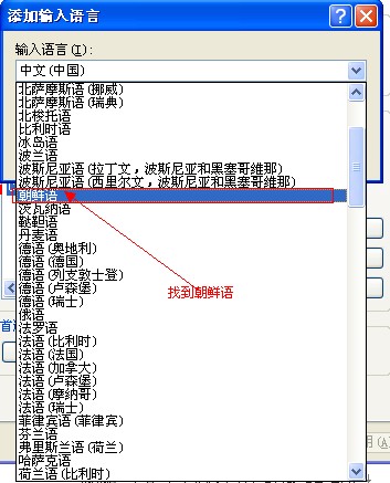 在“输入法区域设置”选项中选择“朝鲜语”,