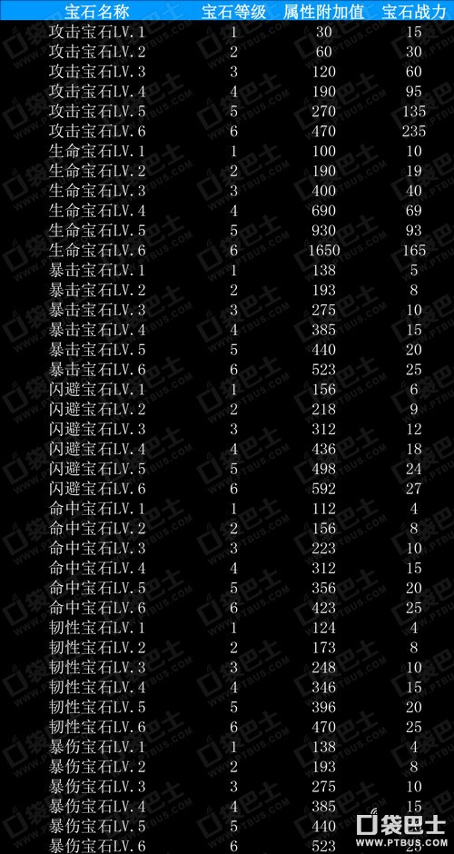 宝石一共分为七种分别为攻击宝石、生命宝石、暴击宝石、闪避宝石、命中宝石、韧性宝石、暴伤宝石!