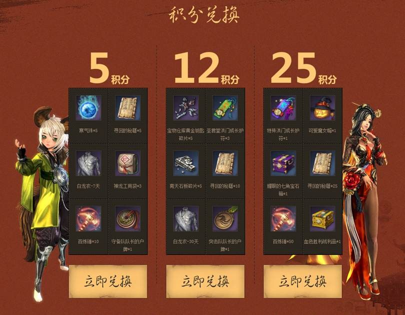 积分可用于抽奖(抽一次消耗1积分),累计积分可兑换礼包。抽奖与兑换礼包都会消耗剩余积分。