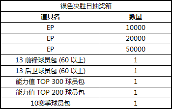 模式奖励以抽奖箱形式发放,根据连胜场数的不同,获得抽奖箱的数量也会有所不同。在抽奖箱中,包括30万EP、13赛季TOP50球员、10赛季TOP300球员等超值奖励应有尽有,百分百的中奖概率确保玩家定会有丰厚收获。另外值得一提的是,在击破对方PVP连胜后也可获得EP奖励,这一设定无疑将使新模式对于那些喜欢PK对战、挑战电竞绿茵、决心问鼎游戏巅峰的玩家们更具吸引力!