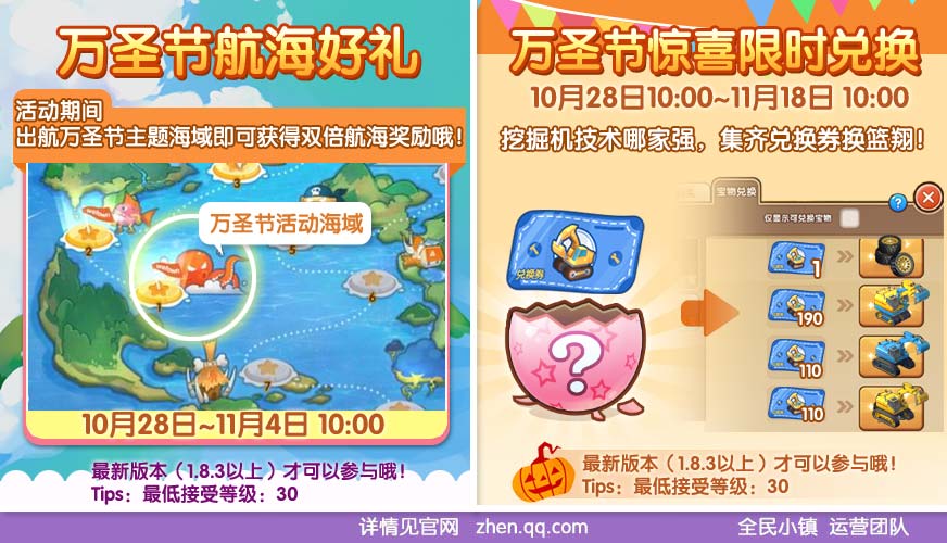 活动规则:《全民小镇》万圣节推出特殊兑换券,集齐不同的张数兑换相应礼包,最受瞩目SS级挖掘机篮翔等你前来领取。