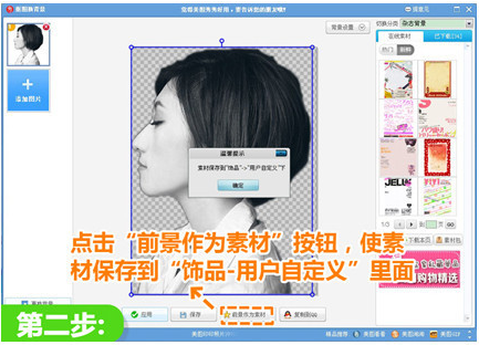 2、点击“前景作为素材”,使素材保存到“饰品-用户自定义”下。